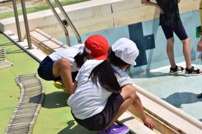 学年別に分担した箇所を、みんなで一生懸命に頑張りました。みんなの協力のおかげで、プールはとても綺麗になりました。来週のプール開きが楽しみです。