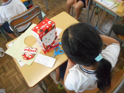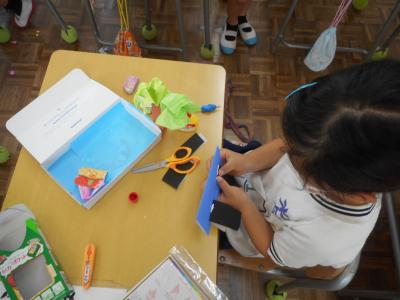 子どもたちは、トンネルやお弁当箱などの思い思いのうきうきボックスを楽しみながら一生懸命に作っていました。