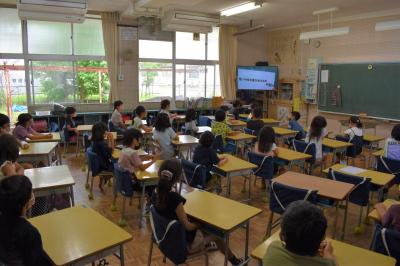 今日(5月7日)は、5年生が「水俣に学ぶ肥後っ子教室」を行いました。今年度は新型コロナウイルス感染症拡大防止のため、リモートでの開催でした。子どもたちは、環境センターの方のお話や語り部さんのお話を画面越しではありましたが、集中して聞けました。