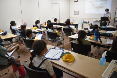 今日(16日)、2年生は木倉校区の熊本バス自動車学校へ「まちたんけん」に行きました。
