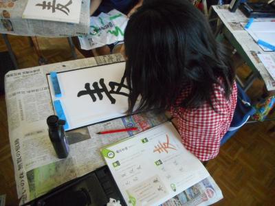 子どもたちは、どのようにすると上手に書けるのかなど考えながら、真剣な表情で書いていました。