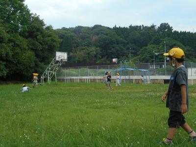 今日(22日)も、運動場で遊ぶ子はたくさんいました。水分補給や帽子をかぶることなどの熱中症予防をして楽しく遊んでいました。
