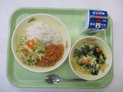 インドではひき肉のことを「キーマ」というので、ひき肉を使ったカレーのことを「キーマカレー」といいます。日本では東京にあるインド料理店で初めて出されたそうです。ひき肉を使ったカレーでも今日のような水分の多いカレーを「キーマカレー」、水分の少ないカレーを「ドライカレー」と分けて給食では出しています。