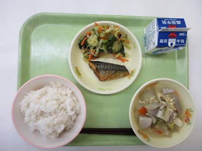 今日は鹿児島へ味の旅です。「さつま汁」は給食でもおなじみのメニューですが、実は鹿児島の郷土料理です。特産のさつまいもやさつまあげを入れるからではなく、「さつま鶏」を入れた味噌汁のことを「さつま汁」というそうです。また鹿児島は黒豚が有名です。今日は黒豚ではないですが、鹿児島産の豚肉を使って生姜焼きにしました。