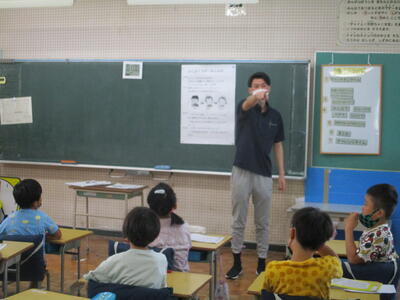 木倉小に入学して2ヶ月が経ち、1年生も小学生らしく成長しました。この日は若葉保育園や認定こども園、昭和保育園、上野保育園、高木保育園、ぎんなん幼愛園の6つの園の先生方、7名が来校され、子ども達の様子を参観されました。