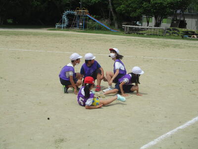 みんな点数が取れて、守備の子どもたちもチームワークが大切になります。木倉の体育はみんなが運動の楽しさを味わえるような工夫が満載の体育学習です。