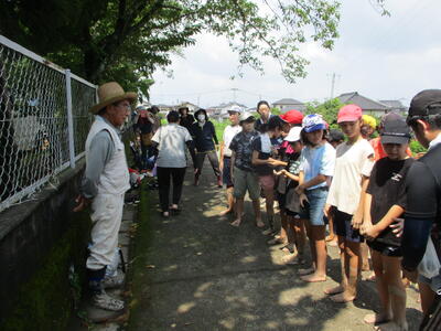 子どもたちは事前に学習してきた中で、疑問に思ったこと、もっと知りたいことをどんどん質問していきました。実際に現地へ行き、自分の目で見て、地域の方々の思いを聞く中でふるさと御船町を自慢に思う気持ちがさらに大きくなっていったようです。