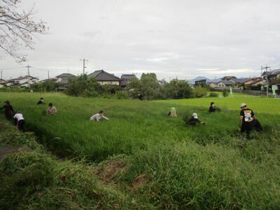 残りの草は子ども達が毎日ボランティアで取ってくれています。また、5年生の保護者の皆様には田んぼの中の草取りも大変お世話になりました。