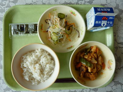 酢豚風、バンサンスー、味のり、麦ご飯、牛乳