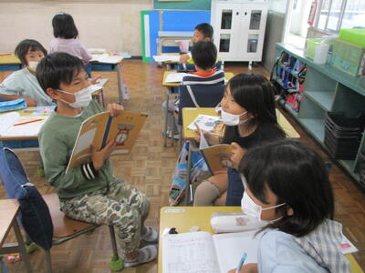 お兄さん、お姉さんになった2年生が1年生を連れて職員室や保健室、図書室などの教室をまわりました。2年生はその教室の役割などを一所懸命にそして分かりやすく説明できました。各教室にはそれぞれにミッションが用意されていてそれを解きながら楽しく学校探検をしました。2年生も1年生がミッションを解けるようにしっかりお手本を見せていて、成長を感じました。