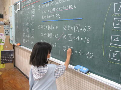 九九を活かして□の数字を考える学習もみんな意欲的に笑顔でできました。