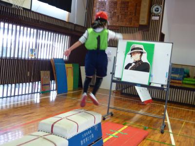 木倉小は、教科体育の授業について30年以上にわたって研究を積み重ねています。今週は、1年生の研究授業「木倉山での鍛錬を乗り越え 目指せ柱!(跳び箱を使った運動遊び)」を実施しました。