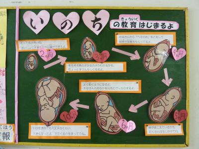 各学年においては、それぞれの発達段階に応じて、体の成長や生命誕生等を理解するとともに、性情報に対する正しい判断力や行動力を身に付ける学習を行っています。また、保健室の前にも、学習に応じた内容を掲示しています。