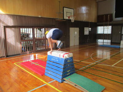 6年生の体育は器械運動「跳び箱」を学習しています。この日は、開脚跳びと抱え込み跳びに取り組みました。より美しくをめあてに、友達のアドバイスを聞いたり、ICTを活用したりしながら取り組んでいました。