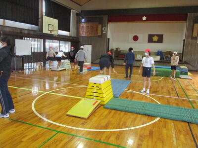 「着地をピタッとできるようになりたい」「今できる技をもっときれいに成功させたい」などの自分の課題解決に向けて、練習の場を選択したり、友達と見合ったりして、意欲的に取り組んでいました。なお、6年体育は、今週末から2月の研究発表会に向けてソフトバレーボールの授業に入っていきます。