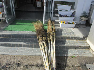 今日、また地域の方から竹箒を10本頂きました。とても立派な竹箒で、掃除が楽しくなりそうです。できたての竹箒はまだ水分が多くて少し重いので、しばらく乾燥させて子ども達に使ってもらいたいと思います。