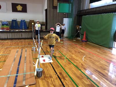 学んだ運動のこつを意識して元気いっぱいにジャンプしています。今回は、自分の課題に合わせた運動の場を自分で選んで練習に取り組んでいます。