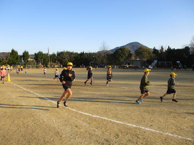 先生方も一緒に走り、子ども達に励ましの言葉や褒め言葉をたくさん与え、子ども達は益々張り切ってがんばっています。目標にチャレンジし、粘り強くがんばる子ども達です。