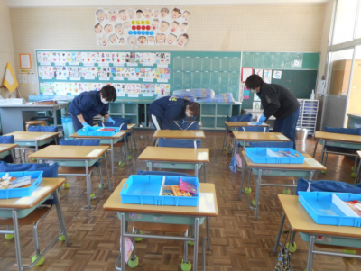 4月27日(火)より30日(金)まで新型コロナウイルス感染症拡大防止のため臨時休校となりました。本校では、職員の体温チェックや校内の消毒を毎日行っています。職員一丸となって安心して過ごせる学校作りに励んでいます。
