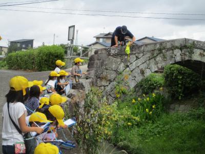 7日(水)、2年生は学校の前にある門前橋へ「まちたんけん」に行きました。
