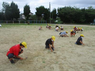 子どもたちは、自主的に参加し黙々と頑張っています。運動場もどんどん綺麗になっています。