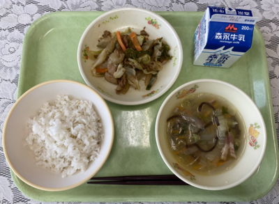ホイコウロウ、春雨スープ、麦ご飯、牛乳