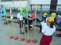 今日(10月27日)の1時間目は、一昨日(10月25日)に開催した運動会の後片付けを、全学年で分担して行いました。
