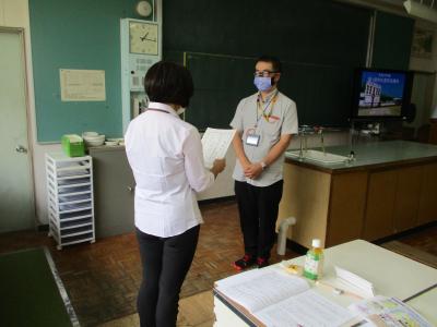最後に職員の方から「無駄な物は買ったり、食べ残したりしない」ことや「牛乳パック6つでトイレットペーパー1個分になるので、ごみは分別する」ことなどの話しをしていただきました。また、クリアファイルや鉛筆、缶バッチなどのお土産をいただき、子どもたちは喜んでいました。ありがとうございました。