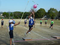 4年生の「みんなでジャンプ! そして1UP(走り高跳び)」の様子です。