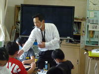 木倉小においても、今年度からは全学年で英語の授業を実施しています。アメリカ人の外国語指導助手(ALT)に加えて、英語専科教師、教育委員会の英語教育指導主事を毎回派遣していただき、授業の充実を図っています。