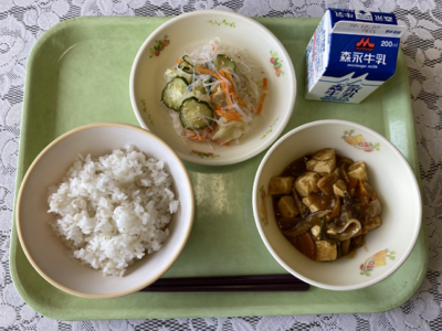 9月28日(月) 投稿日時 : 2020/09/28 学校サイト管理者 カレー豆腐、春雨のごま酢和え、麦ご飯、牛乳 カレー豆腐はいつものマーボー豆腐をカレーで味つけしました。豆腐は植物性(大豆)のタンパク質を豊富に含んでいます。そのほかにもカルシウムも多く含まれています。