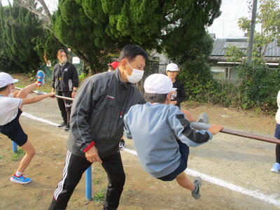 子ども達は3人の4チームを組んで、お互いに励まし合ったり、アドバイスし合ったり、時には相手の膝を手で押してあげて補助をしたりして一生懸命にがんばっていました。