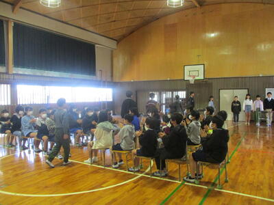 卒業式まで約1週間となった今日の3校時~4校時に、5、6年生全員が参加して卒業式の予行練習が体育館でありました。