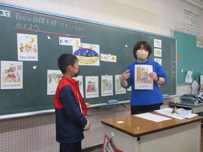 【学校生活】4年生「外国語活動:1日の生活を紹介しよう」
