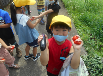 1年生 生活科「夏野菜の収穫」 投稿日時 : 2021/07/13 学校サイト管理者 1・2年生が生活科の学習で育てている、ナス、トマト、オクラ、キュウリなどの夏野菜が、次々と実っています。今日(13日)は、1年生が収穫をしました。子どもたちは、泥にぬかりながらも楽しんで収穫していました。 Tweet {{options.likeCount}} {{options.likeCount}} {{options.unlikeCount}} {{options.unlikeCount}} 0 コメント
