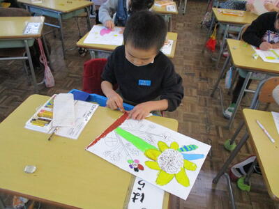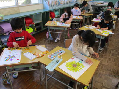 【学校生活】1年生「図工:お花の絵を描こう」 投稿日時 : 2022/02/28 学校サイト管理者 1年生ではお世話になった6年生への感謝の意味も込めて、お花の絵を描きました。 お世話になった6年生の顔を思い浮かべて、6年生が喜んでくれるように色とりどりの花の絵をみんなで描きました。 花びら1枚1枚をクレヨンで、はみ出さないようにていねいにぬり、カラフルな色で華やかな花の絵を完成させていきました。みんな集中してがんばり、自信作が完成すると達成感でいっぱいになっていました。6年生が喜ぶ顔が浮かんできます。 Tweet {{options.likeCount}} {{options.likeCount}} {{options.unlikeCount}} {{options.unlikeCount}} 0 コメント