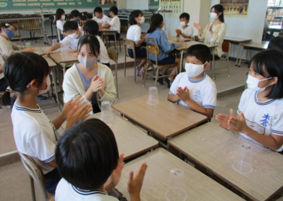 4年生音楽「リズム遊び」 投稿日時 : 2021/10/15 学校サイト管理者 昨年度に引き続き、学習支援のために平成音楽大学から4名のボランティアに来ていただきました。 今日(15日)は3名のボランティアの方が、4年生の音楽の授業の支援をしてくださいました。授業では、ボランティアの方のピアノ演奏に合わせて一緒にカップスをして楽しみました。 Tweet {{options.likeCount}} {{options.likeCount}} {{options.unlikeCount}} {{options.unlikeCount}} 0 コメント
