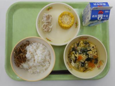 6月9日(水) 投稿日時 : 2021/06/10 学校サイト管理者 麦ごはん、手作り佃煮、中華風かき玉スープ、シューマイ、とうもろこし 今日は今が旬のとうもろこしです。昔は牛のえさとして栽培されることが多かったですが、年々品種改良が進み、より甘みが強く、そして生のままでも食べられるものが増えてきています。とうもろこしは炭水化物やビタミン類を多く含むので、熱い夏を乗り切るエネルギー源になります。 Tweet {{options.likeCount}} {{options.likeCount}} {{options.unlikeCount}} {{options.unlikeCount}} 0 コメント