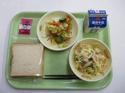 11月30日(火) 投稿日時 : 2021/12/01 学校サイト管理者 食パン、クリームスパゲッティー、レタスと揚げごぼうのサラダ、マーシャルビーンズ 今日は揚げたごぼうをサラダに混ぜて配ってください。ごぼうは世界各地にありますが、食べているのは日本だけだそうです。日本ではごぼうがもつ独特の香りや歯ごたえが好まれ、伝統野菜として親しまれています。ごぼうは冬が旬で、食物繊維やミネラルがたくさん含まれています。 Tweet {{options.likeCount}} {{options.likeCount}} {{options.unlikeCount}} {{options.unlikeCount}} 0 コメント