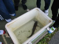近くの川で釣ったこい。通学途中でみつけた蛇のぬけがら。