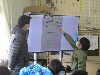 教材文を読んで、登場人物の思いに気持ちを重ねていくことで、友達がいじわるされていやな気持ちになっているときに、勇気を出して「やめろよ」ということが大切なことにみんなで気づき合っていきました。
