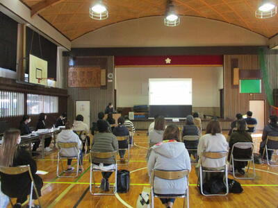本日、来年度新1年生(24名 2月22日現在)の保護者説明会が体育館で行われました。