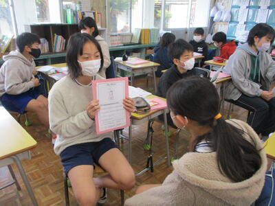 修了式前に、青少年読書感想文コンクール、県文集「ゆめ」、家庭の日推進メッセージ作品の表彰を行いました。修了式では最初に各学年の代表者に修了証の授与が校長先生より行われました。みんな凜々しい表情で受け取っていました。