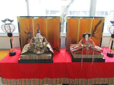 今日はひな祭り、木倉小の玄関にもひな人形が登場し、お客様をお迎えしています。