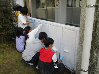 「初めて塗装をしたけど、楽しいです」「きれいになっていくのがうれしいです」と笑顔いっぱいで活動しました。塗装は全部で3回行います。