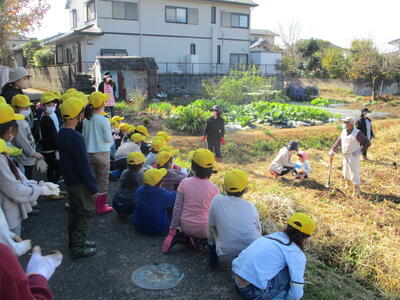 子ども達がいもが掘りやすいようにいもの蔓を事前に切っていただいた畑にみんな入りました。まず最初に、いもの掘り方のポイントを福島さんに教えていただき、いよいよいも掘りです。みんな小さな移植ごてを持ち、いものまわりの土を丁寧に掘り、どんどんいも全体を出していきました。そして一生懸命にいもを引き、大きなさつまいもが取れたときはみんな最高の笑顔でした。何個も連なったさつまいもが収穫されたりして驚きと笑顔いっぱいの畑でした。収穫したさつまいもはおうちに持って帰ったり、お世話になった方々へお礼の手紙を添えて渡したりします。