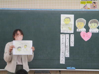 木倉小は今、人権旬間です。各学級で人権学習の授業が行われています。今日は2年生で「このままだまっていていいのか」の人権学習の3時間目がありました。