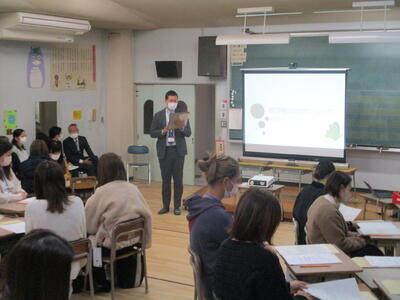 子ども達が検査を受けている間に保護者の方々は音楽室へ行き、教育委員会や学校の説明を聞いたり、親の学びプログラムを受けたりしました。その後は、全保護者と個別の面談を行いました。
