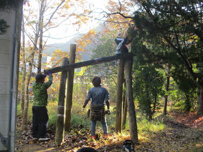 本日のメインの作業は、老朽化した木製遊具の撤去です。この木製遊具は歴代のPTAの方々が作成され、木倉小の子ども達の遊びや体力向上に大きく貢献してきた遊具です。しかし、最近は老朽化が進み、使用禁止になっていました。