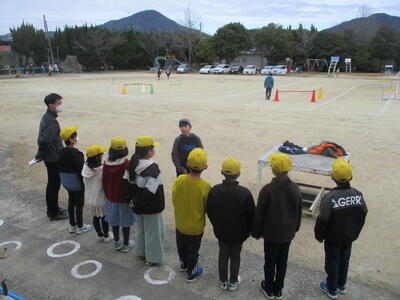 御船町では低学年から外国語活動の時間があります。1、2年生もALTのクリス先生をお招きして、担任の先生とのTT(ティームティーチング)で英語を楽しく学習しています。